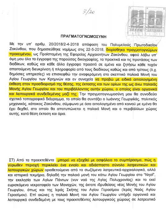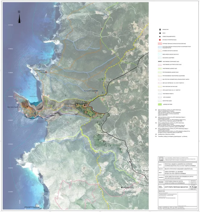 ◆ Στους χάρτες ορίζονται κάποιες περιοχές προς αρχαιολογική διερεύνηση, με ευθύνη της Εφορείας Αρχαιοτήτων Ζακύνθου. Προτείνεται να διευρυνθεί ο αρχαιολογικός χώρος σε σχέση με την πρόταση της Εφορείας Αρχαιοτήτων Ζακύνθου, ο οποίος περιλαμβάνει επιμέρους πυρήνες με βασικότερους το μοναστήρι του Αγίου Γεωργίου με τον περίβολο, το νησάκι-χερσόνησο του Κάτω Αγίου Γεωργίου.